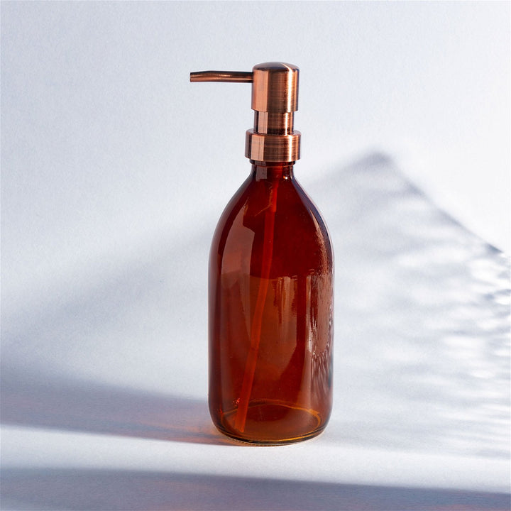 Discover a perfect range of home accessories so you can wave goodbye to single-use plastic. Crafted from glass to create a sleek bottle design, featuring a colourway of amber. Complete with a brass-effect pump and the capacity to hold up to 500ml of liquid. Measurements: D9 x H22.5 x W9cm