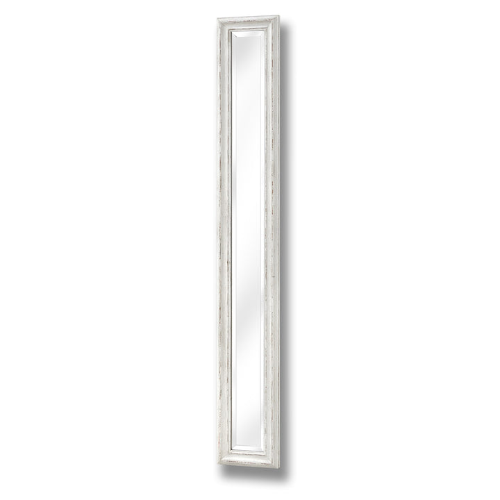 Experience the refinement of classical design with this meticulously detailed narrow wall mirror, embodying understated charm in a graceful antique white finish. The thoughtfully proportioned frame creates an illusion of expanded space while adding architectural interest to any wall, making it particularly well-suited for hallways and intimate spaces. The delicate detailing of the frame work pays homage to traditional craftsmanship, while its slim profile offers contemporary functionality. This mirror serves as both a decorative focal point and a practical addition to your collection, promising strong appeal to style-conscious customers. For a cohesive design story, consider pairing with our selection of decorative elements - the Matt Black Hammered Vases with Lid add dramatic contrast, while the Lattice Ceramic Table Lamp provides complementary texture. The Antique Gold Marching Hares Lamp with its green velvet shade introduces whimsical character while maintaining the mirror's sophisticated aesthetic. Each accessory pairing enhances the mirror's adaptability across various design schemes, from minimalist modern to rich traditional settings. The frame's pristine finish catches and reflects light in a way that animates surrounding spaces, while its proportions allow for creative placement in areas where space efficiency is paramount. This piece resonates particularly well with customers seeking to blend practical function with refined aesthetic sensibility.