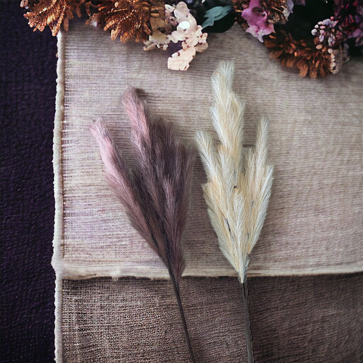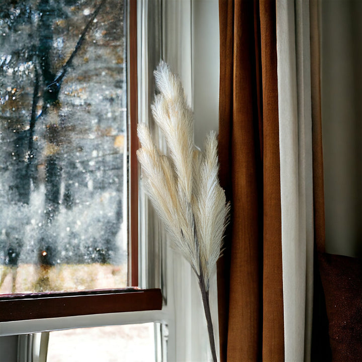 Bring the beauty of nature indoors with this 101cm artificial luxury pampas stem in brown and cream. Add a touch of bohemian elegance to your space with this lifelike 101cm pampas stem. Measurements: D2.5 x H97 x W2.5cm