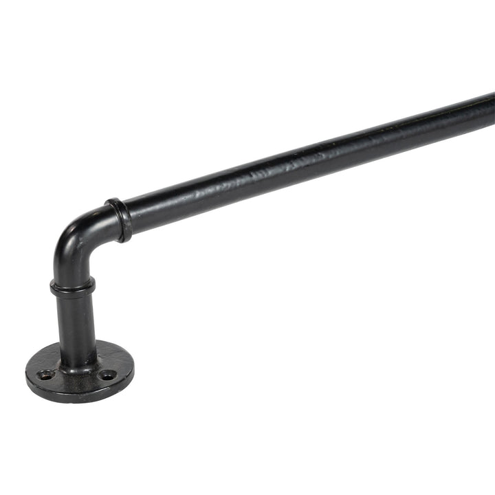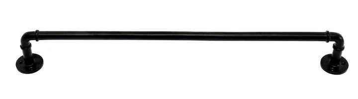 This black metal pipe effect towel rail with an industrial feel, would look stylish in any bathroom. The simple black colour means that this would fit into any home. There are three screw holes with screws provided to secure the rail to the wall. The rail length is 55x1.5cm. Overall measurements are: D8 x H5.5 x W62cm SKU: HH5775