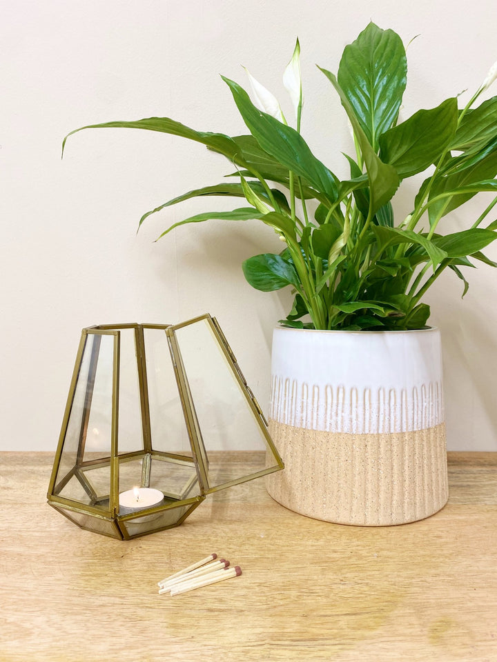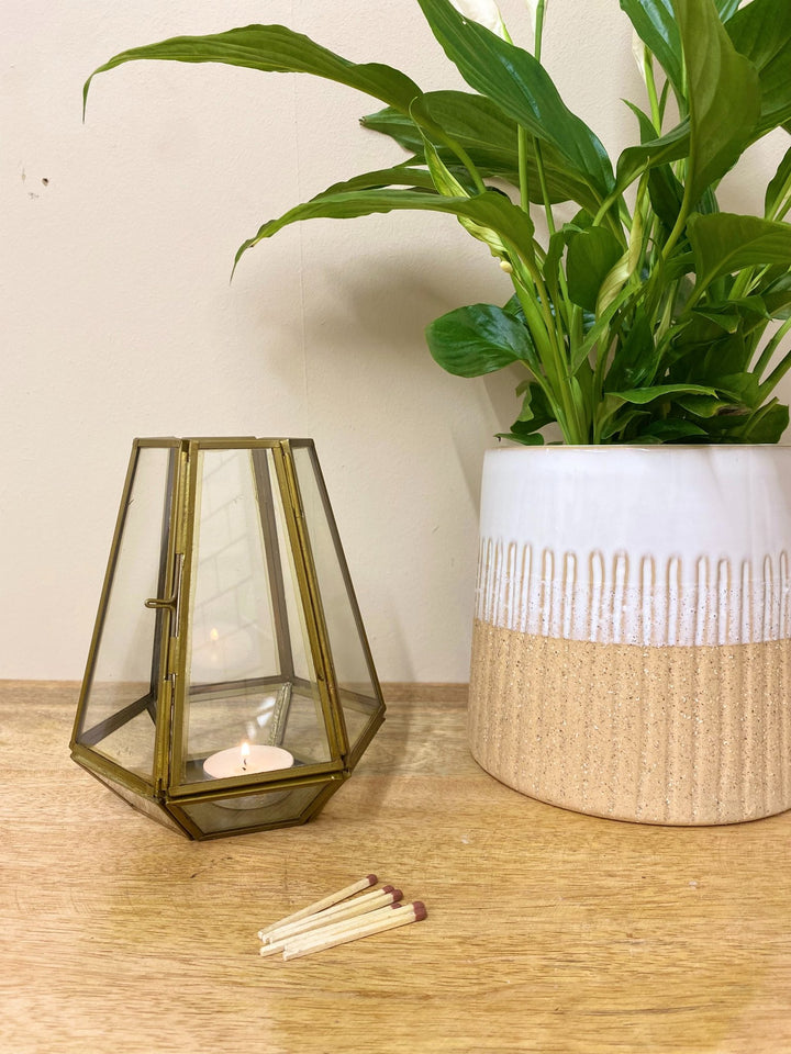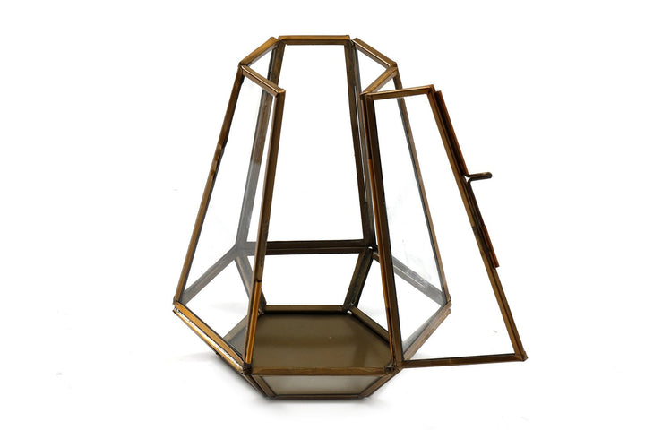 Bronze Metal and Glass Tea Light Holder, a beautiful and elegant decor piece that is designed to hold a single tea light or candle. It is made of high-quality bronze metal and features a clear glass holder for the candle. The bronze finish gives it a rustic and antique look, making it a perfect addition to any home decor style. The glass holder is made of clear, high-quality glass that allows the candlelight to shine through, creating a warm and cosy ambiance. The holder is designed to fit a standard-sized tea light candle or small pillar candle, which can be easily replaced when it burns out. Overall, the Bronze Glass Tea Light Holder is a versatile and stylish decor piece that adds warmth and elegance to any space. Measurements: D13 x H16 x W13cm