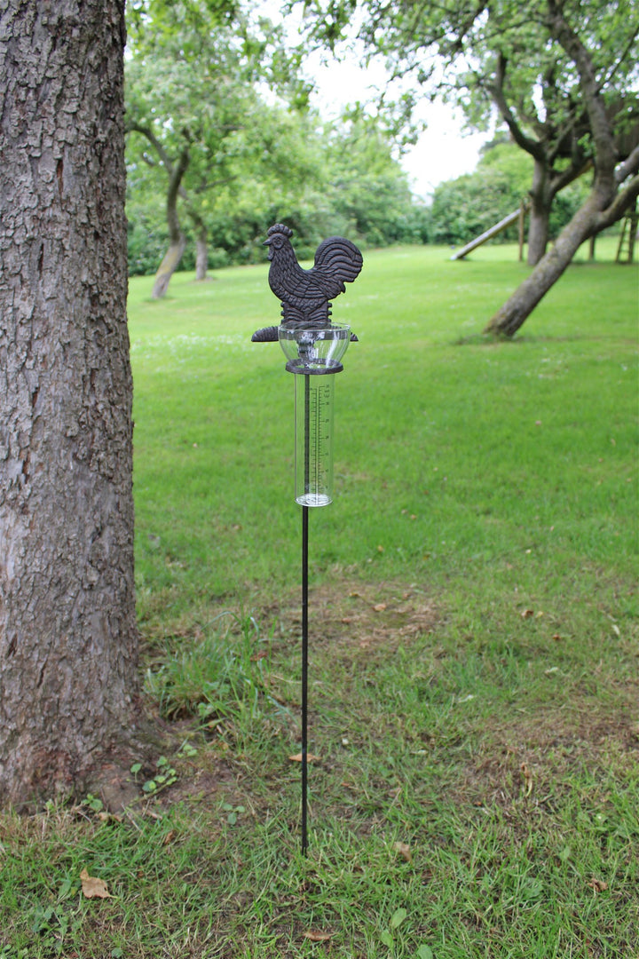 Cast Iron and Glass Garden Rain Gauge, Chicken