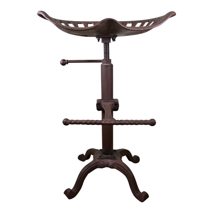 Metal Tractor Seat Kitchen Bar Stool. Replica vintage style Iron Tractor seat in dark brown rustic country kitchen style. Perfect industrial bar or kitchen bar seating With swivel seat which has adjustable height Ideal for any room- Suitable for bars, home, restaurants and much more!! Picking up on a rustic industrial theme, this is a Tractor Seat Bar Stool which is an iron replica of a seat from a tractor. It has a swivel seat and the height can be adjusted to suit. Maximum stool height 79cm. Minimum stool height 58cm. Seat size, width 47cm, depth 37cm. Floor footprint, width 33.5cm, depth 33.5cm. Comes partially assembled, minimal assembly required Measurements: 39 x 79 x 47cm