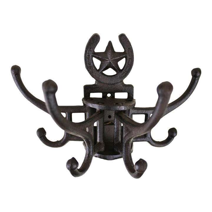Cast Iron Wall Mounted Rotating Coat Hooks, Horseshoe, 8 Hooks