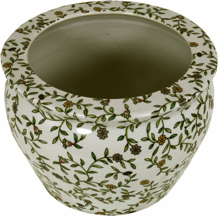 A glazed ceramic planter with a vintage green and white floral design. These ceramic planters are a must-have when it comes to gardening. They would look fantastic as a statement piece in your garden or your patio. The material is resistant to frost, so you can be sure your planters will be safe during those colder months. Equally at home as indoor planters for your conservatory or hallway. The pot is ceramic with a transfer printed design.Internal dimensions of pot, diameter 19cm, height 18cm. Measurements: 25.3 x 18.7 x 25.3cm