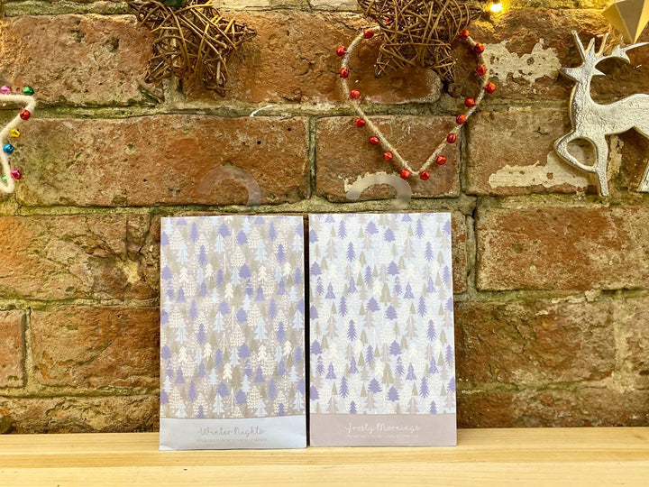 A set of two fragrance sachets under the Christmas themes of frosty mornings and winter nights. The fragrance is fresh and clean and are sure to enrich drawers and wardrobes throughout the dark days and nights. Each sachet has a net weight of 20g and has a hanging hook. Overall measurements are: D0.5 x H7.5 x W11cm