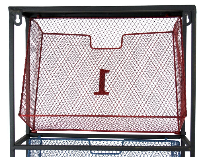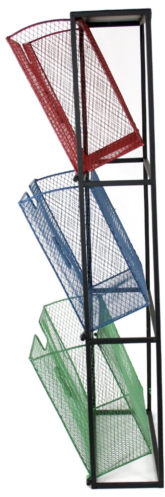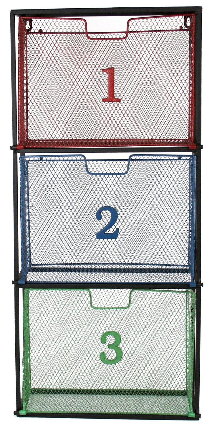 This is a really funky wall filing unit or magazine rack made from metal with 3 coloured and numbered drop forward metal mesh drawers. The unit has 2 keyhole fixings to the back for easy wall hanging (fixings not included). Great for storing papers and homework in the study or for use as an urban style magazine rack! Measurements: 74.9 x 34.3 x 12.1cm