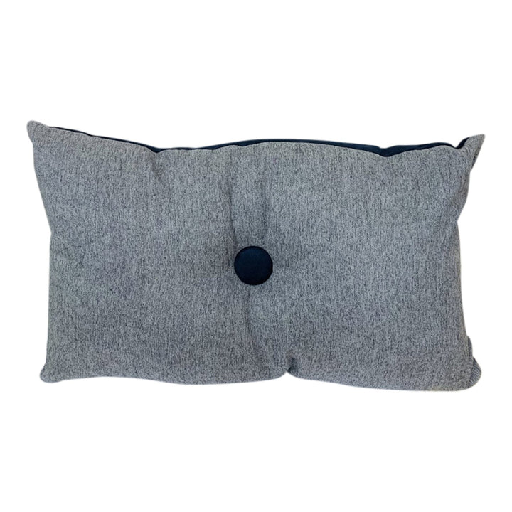This rectangular reversible light blue and grey cushion would be great for adding colour to a living room or bedroom. The contrasting central button gives a pop to the cushion. The cushion comes fully filled and ready for use. The dimension of the double sided scatter cushion are 13x45x36cm with the central button feature 3.5cm diameter of contrasting colour light blue / grey. The filling is 100% polyester. SKU: SR0045