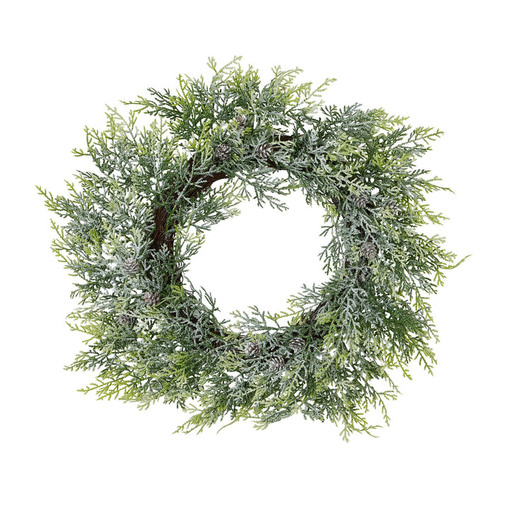 Experience the enchanting beauty of winter with this meticulously detailed frosted pine wreath, where delicate ice-kissed needles create an authentic seasonal display. Each branch appears naturally dusted with morning frost, while thoughtfully placed pinecones add organic texture and dimensional interest throughout the design. This winter-inspired piece coordinates seamlessly with our curated collection of frost-touched accessories, including the matching garland and complementary LED winter wreath with eucalyptus and lamb's ear for a cohesive seasonal display. The wreath's neutral palette of silvery green and frost-touched elements makes it an ideal centerpiece for retail merchandising, allowing customers to build their own winter collections. For enhanced visual impact, consider pairing with our stone candle holders, carved wood effect snowy trees, and festive snow branches to create compelling multi-level displays. The wreath's carefully structured design maintains its appeal from every angle, making it equally suited for window displays, door arrangements, or table settings. Its lasting quality ensures it remains a profitable addition to any seasonal inventory, with the potential for repeated seasonal sales and year-round storage capability. The refined combination of frosted textures and natural elements appeals to customers seeking both traditional and modern winter décor, maximizing its market appeal across diverse consumer preferences.