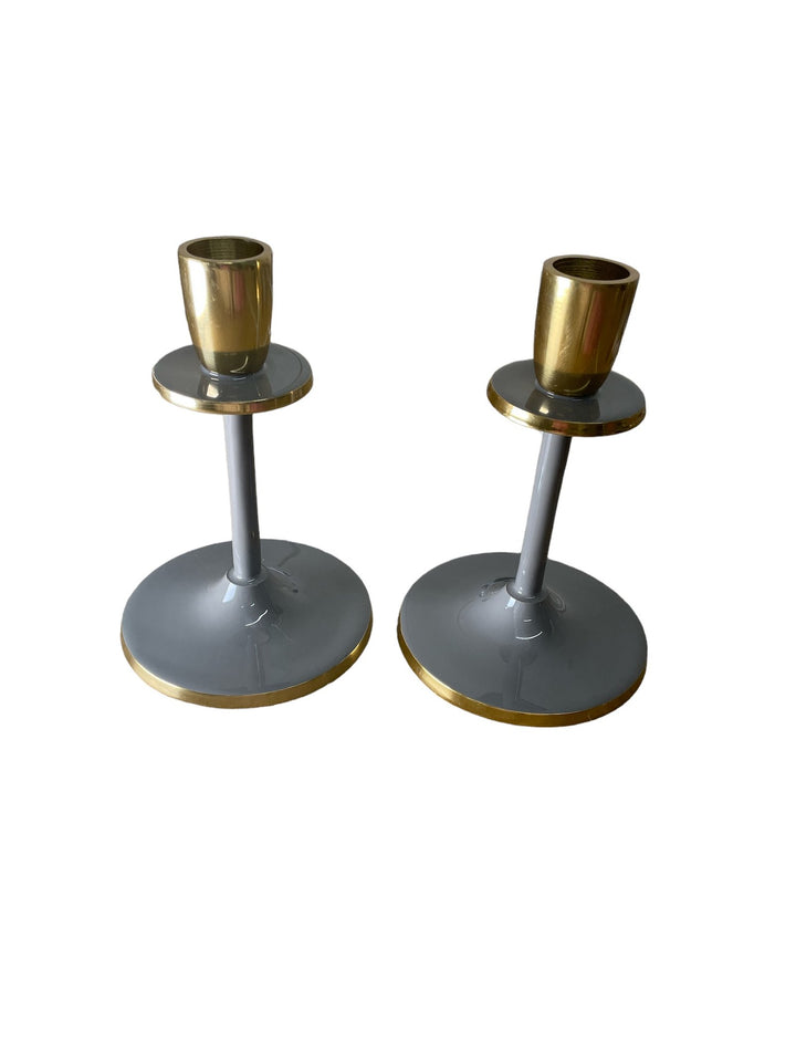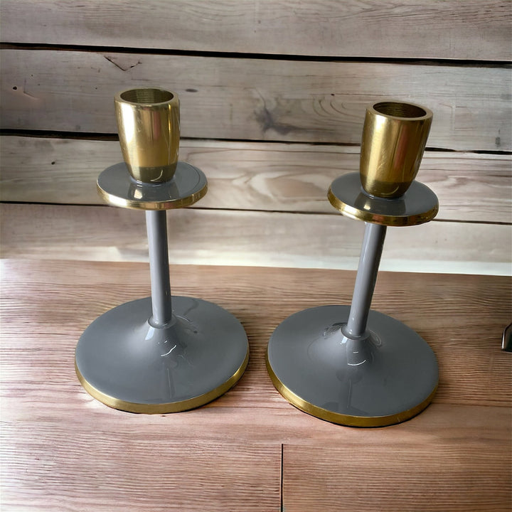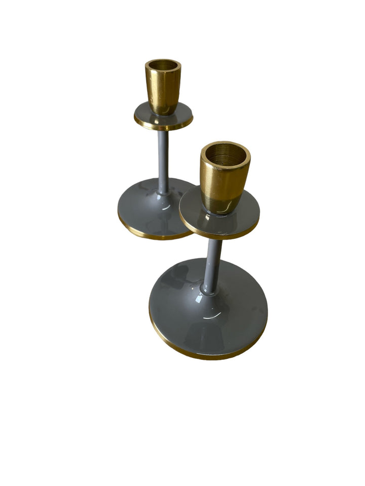Glossy Grey Irina Candlestick, Set of 2, 15cm