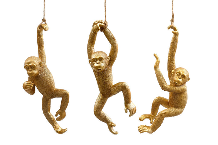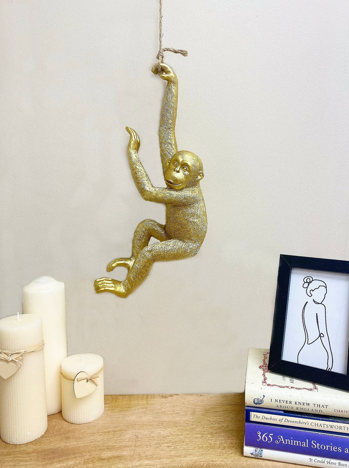 This cheeky gold monkey decoration is made of polyresin and is suspended by a jute loop. This decoration is fun and unusual and will add a touch of interest to your home. Measurements: D8 x H38 x W16cm