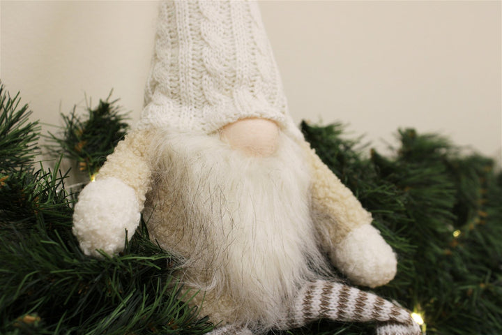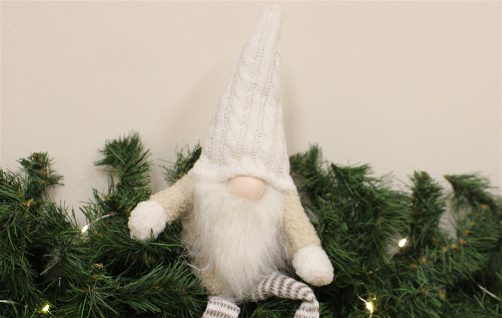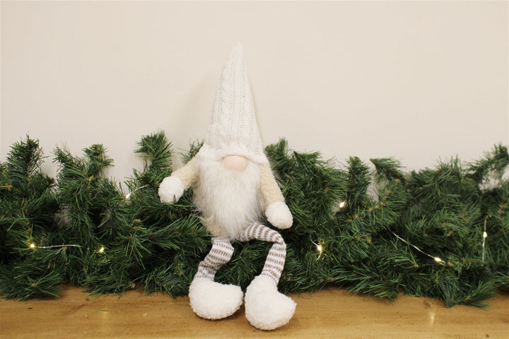 Sitting dangly leg Gonk with white hat and boots. The hat is strengthened for support and styling. Measurements: D9 x H42 x W16cm