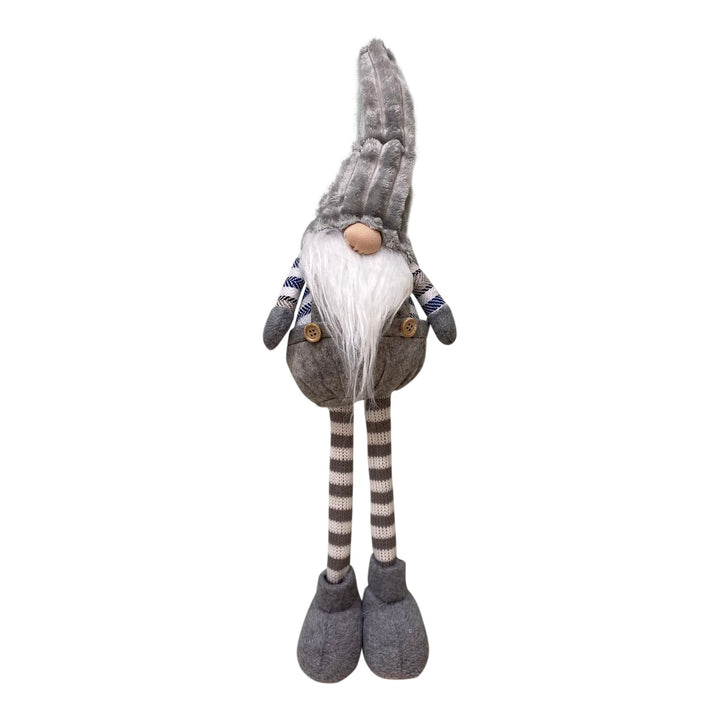 Light grey fabric standing Gonk. Festive character to decorate any home at Christmas time. The hat is strengthened by wire for support and styling. The leg length measures 20cm and is fixed. Measurements: D11 x H60 x W16cm