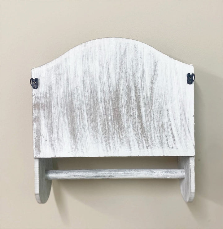 Grey Wooden Kitchen Towel Holder With Cutout Pattern Shelf