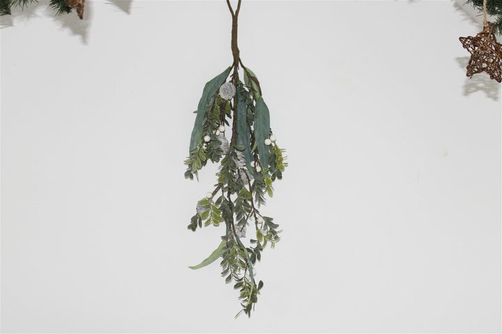 Bring the outdoors indoors with this Alpine sage and snowberries decoration. It features miniature pine cones intertwined with the leaves and is finished with a hanging loop. It features white Snowberries intertwined with the leaves and branches, finished with a hanging loop. Measurements: D15 x H62 x W15cm