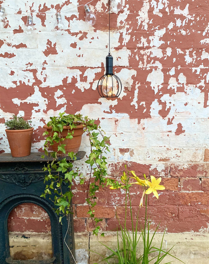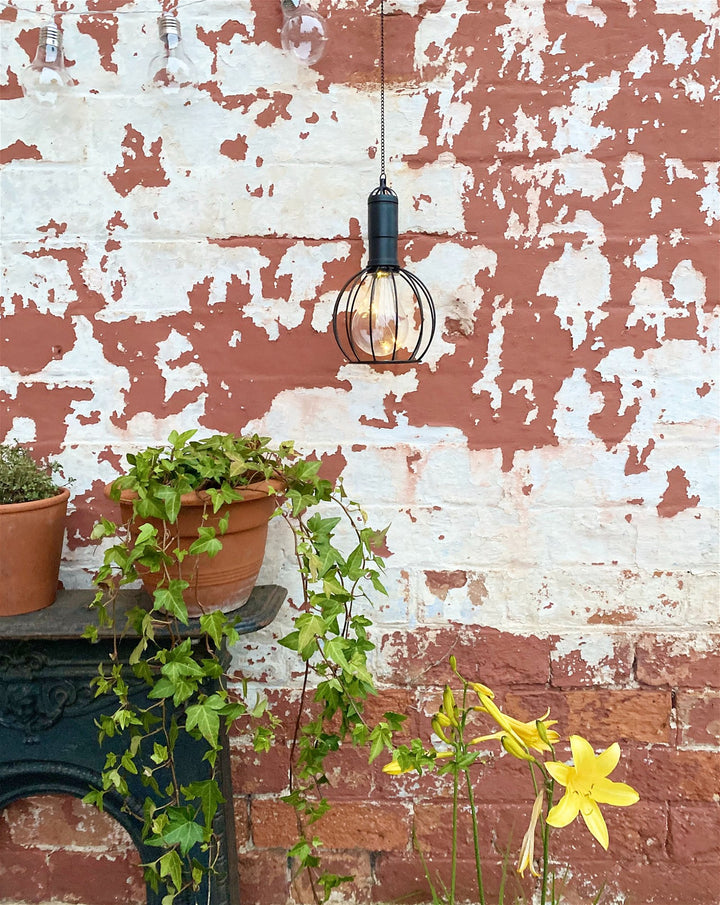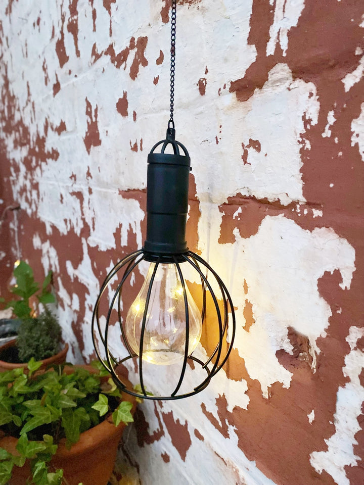 Tiny light up fireflies give this lantern a magical feel. Beautiful vintage design, with chain and hook hanging detail. Hang in a sunny spot in direct sunlight and turn the switch on. The bulb will then automatically illuminate at night. 1 x AA NI-MH 100MAH 1.2V battery included. Measurements: D14 x H50 x W14cm