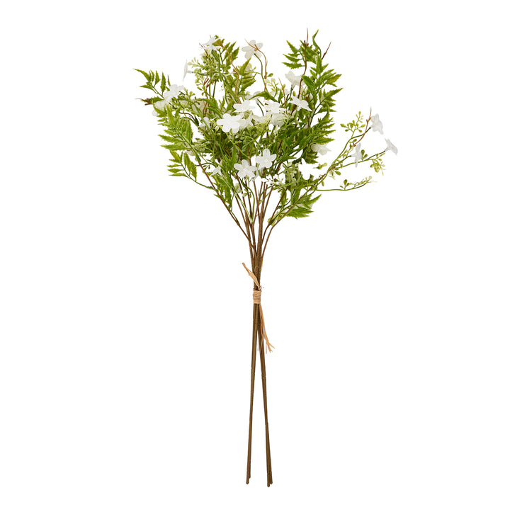 Bring natural serenity to your floral arrangements with this delicate white bellflower. Its pristine petals and graceful stems create an ethereal display that captures the essence of meadow botanicals. Perfect for modern and rustic interior settings, this artificial bloom pairs beautifully with our Cream Cosmos Spray, White Gypsophila, and Variegated Eucalyptus Bouquet for a complete botanical story. Display in our Darcy Antique White Vase to achieve a cohesive, refined look that appeals to design-conscious customers seeking authentic-looking permanent botanicals.