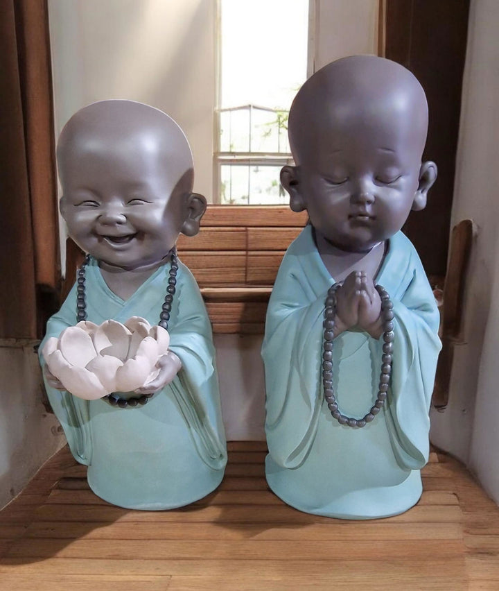 Beautiful set of 2 Buddha's. Produced in trending colours, these would look great on a side board in any room. Perfect gift for someone. As Buddha said "In the end all that matters is how much you loved, how gently you lived, and how gracefully you let go of things not meant for you" Measurements: D36 x H37 x W23.5cm