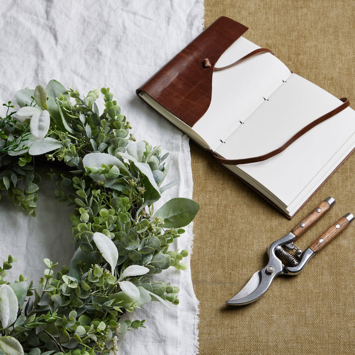 This luminous winter wreath merges rustic charm with modern LED technology, creating an atmospheric glow that enhances any seasonal display. The careful arrangement of silvery eucalyptus leaves and soft, textured lamb's ear foliage provides depth and visual interest that catches both natural and artificial light. The intertwining of these botanical elements creates subtle shadows and highlights, making it an ideal focal point for entryways, mantels, or retail displays. For trade customers, this piece represents exceptional value, offering your customers a designer-quality decorative item that seamlessly blends traditional wreath styling with contemporary lighting innovation. The neutral color palette ensures broad market appeal, while the combination of frosted and matte textures adds sophisticated dimension. This wreath pairs beautifully with our curated selection of complementary accessories, including the matching LED winter garland, smoked midnight glass candle holders, and natural glow LED tealight candles. The addition of the Darcy antique white vase nearby creates a cohesive seasonal display that will entice customers to make multiple purchases. The wreath's ability to transition from day to night makes it particularly valuable for retailers, as it effectively demonstrates its dual functionality during store hours and evening displays. The built-in lighting element eliminates the need for additional display lighting, saving on installation costs while creating an enchanting atmosphere that draws customers to your seasonal department.