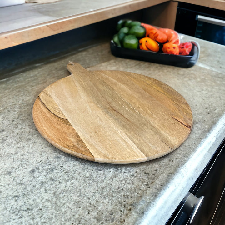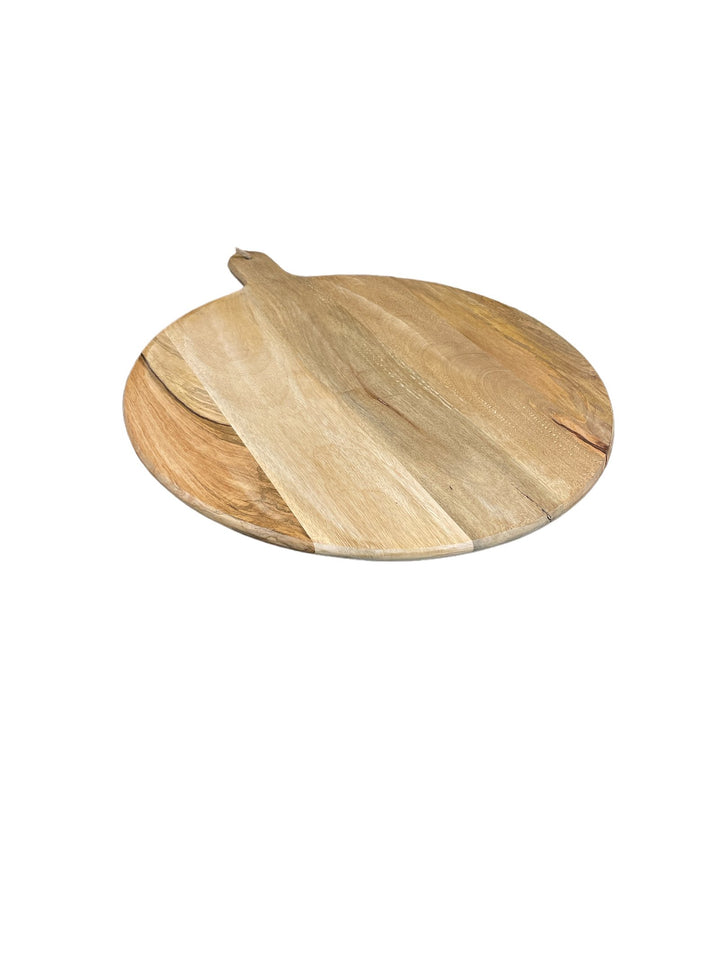 Showcase your culinary creations on this spacious 60cm mango wood round board, combining style and functionality. Add a touch of warmth to your dining experience with this versatile and generously sized round board. Measurements: D1.7 x H60 x W50cm