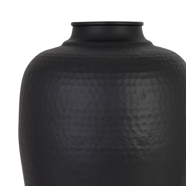 Matt Black Large Hammered Vase With Lid