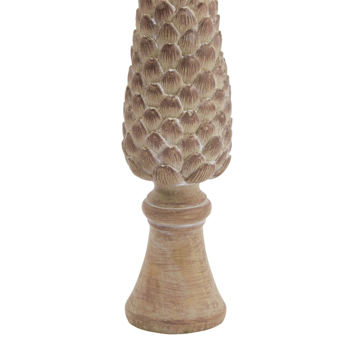 A meticulously sculpted pinecone ornament that infuses rustic allure into any display setting. This artistic interpretation captures the intricate spiral patterns and layered scales found in woodland treasures, mounted atop a solid base for stability and distinction. The piece demonstrates exceptional attention to detail in its three-dimensional form, making it an appealing focal point for seasonal merchandising. Perfect for boutique retailers seeking distinctive decorative items, this sculpture resonates with collectors and design enthusiasts alike. The medium-sized dimensions create substantial visual impact without overwhelming space arrangements. Pair beautifully with the coordinating larger pinecone sculpture for dramatic scaling effects, or complement with The Noel Collection wicker bell decorations and white-washed angel ornaments to create cohesive seasonal displays. The neutral palette ensures year-round appeal beyond holiday seasons, while the organic texture adds depth to any curated collection. An excellent choice for retailers specializing in artisanal home accessories and nature-inspired decor.