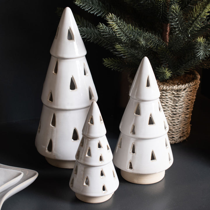 Medium White Ceramic Cut-Out Tree With LED Lights