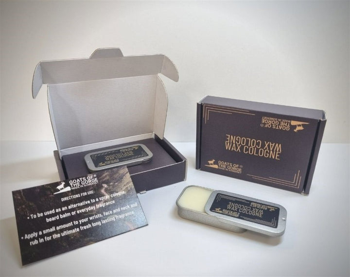 Travel size 20ml wax cologne by Goats of The Gorge. The perfect gift idea. Longer lasting than aftershave, this wax cologne can be used as a beard balm or simply as an everyday fragrance. To apply, lightly slide a finger over cologne and dab onto pulse points such as the wrist, or behind the ears and neck. Made using natural ingredients; Beeswax- Shea butter- Jojoba Oil- Parfum. With hints of Jasmine, Gardenia, Lemon, Bergamot and Mandarin. Middle notes Orchid, Spicy notes, Fruity notes and Lotus. Vanilla Wood. Goats of the Gorge are proud to be Leaping Bunny approved. All of their own brand cosmetic and personal care products are approved under the Cruelty Free International Leaping Bunny programme. Measurements: D2.5 x H7 x W11cm
