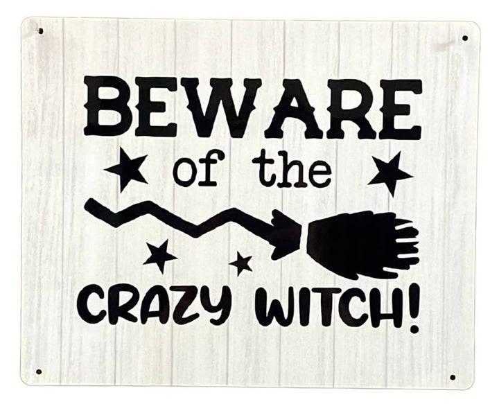 Part of our fantastic range of reproduction vintage metal signs. Beware of The Crazy Witch sign. Made in the UK from aluminium, suitable for use inside or outside. Every poster features 4 drill holes for ease of fixing to the wall. Measurements: D0.1 x H25 x W20cm