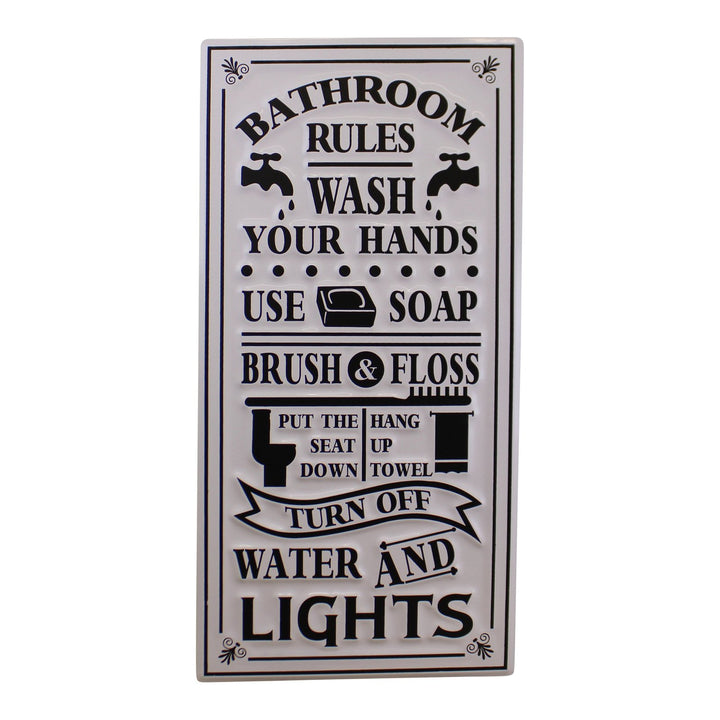 Metal, Wall Hanging Bathroom Rules Plaque, 60x30cm