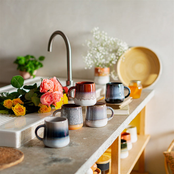 Inspired by popular bohemian trends, following a versatile colourway of chocolate brown. A perfect addition for your kitchenware offering. Crafted from stoneware and finished using a reactive glaze technique, which forms subtle variations in colour tones making each one beautifully unique. This mug has the capacity to hold up to 360ml of liquid and is dishwasher and microwave safe. Due to the nature of the material and the hand-finished technique, there may be variations between the colour and appearance of each item. Measurements: D12.7 x H9.7 x W9.7cm