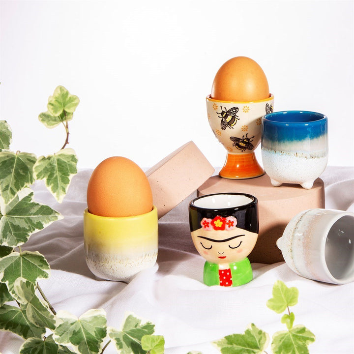 Fall in love with the Boho style, lemon yellow colourway of this little egg cup. The rustic texture and dip ombre effect are created using a reactive glaze which forms subtle variations in colour tones, making each one beautifully unique. Completed with a gloss finish. Due to the nature of the material and the hand-finished technique, there may be variations between the colour and appearance of each item. Measurements: D5.2 x H5.5 x W5.2cm