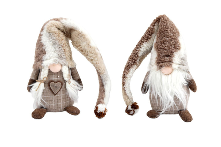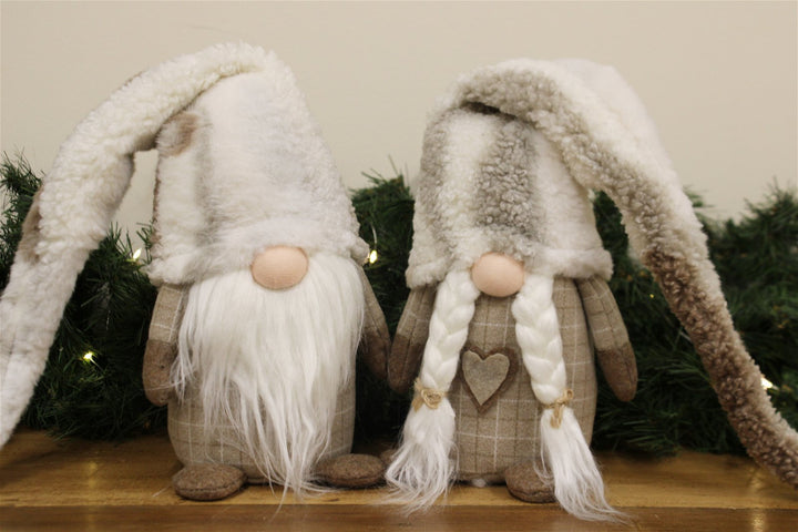 A pair of sitting Mr & Mrs Gonk, with large faux fur hat. This charming pair will add festive cheer to any shelf this Christmas season. Measurements: D12 x H55 x W13cm