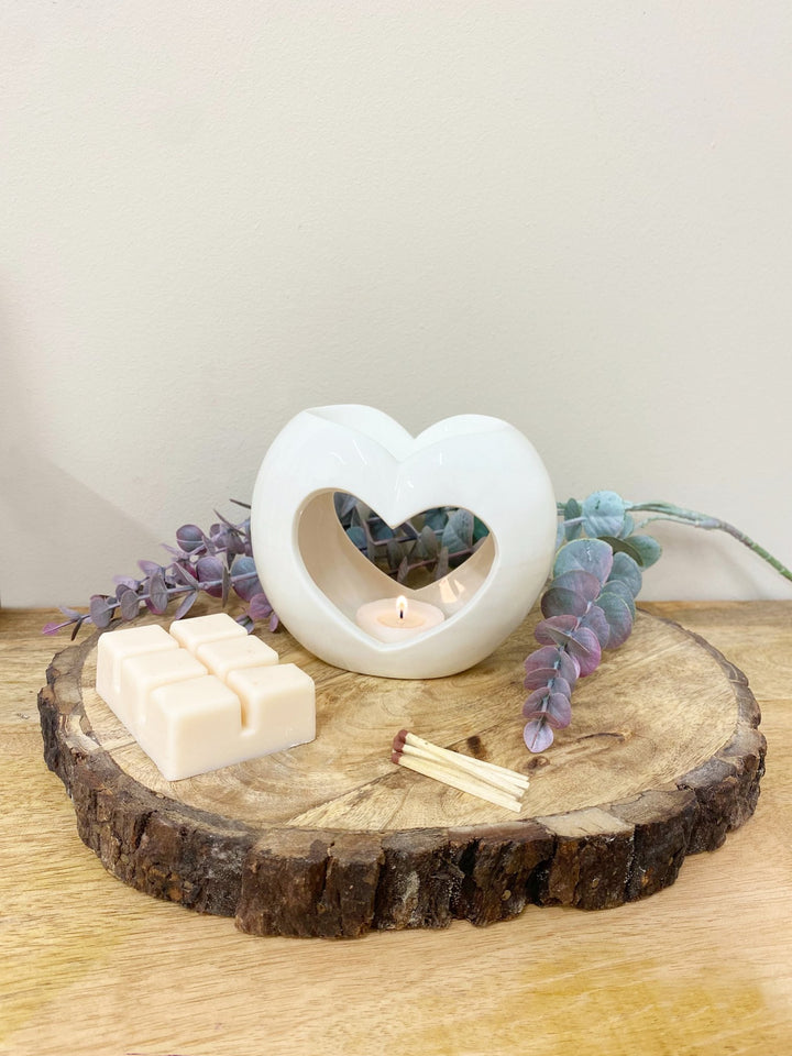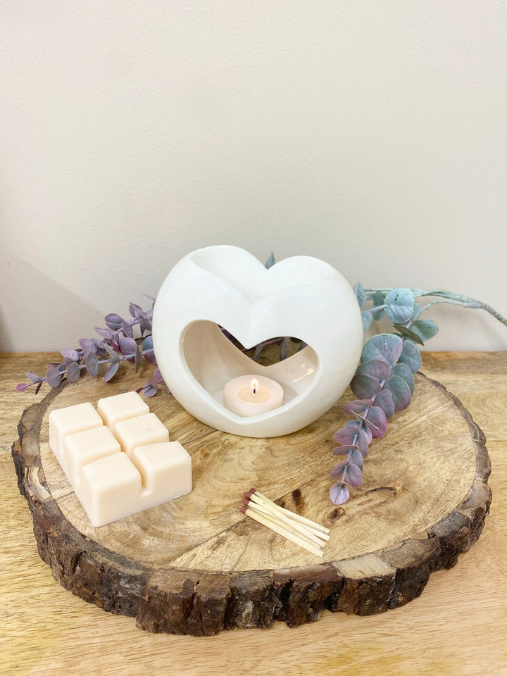 The pearl coloured, heart-shaped wax or oil burner is a beautifully crafted piece with a modern design. The burner consists of a deep bowl that can comfortably accommodate two wax cubes, making it ideal for adding more fragrance to your space. The deep bowl ensures that the wax or oil burns evenly and releases a stronger scent. Made from high-quality ceramic with a gloss finish. Measurements: D11 x H8.5 x W13.5cm