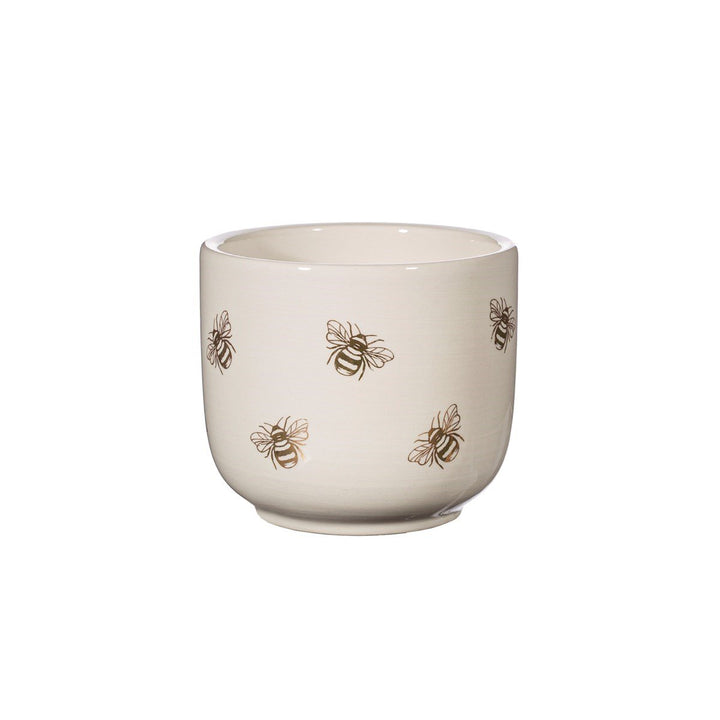 Tapping into the trend and love for bees and wildlife. Featuring a gold and white Queen Bee design. Wonderful for housing and growing cacti or other small succulents and plants. Measurements: D7.5 x H6.5 x W7.5cm