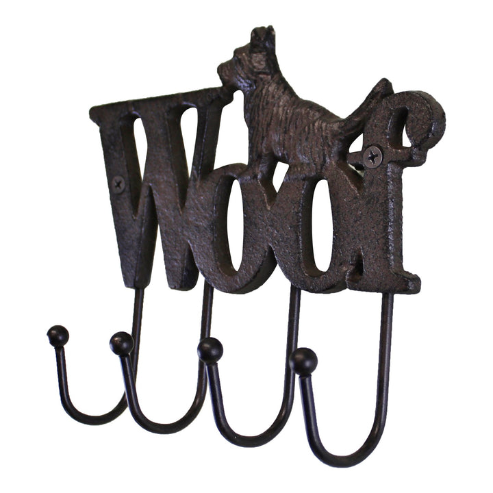 Rustic Cast Iron Wall Hooks, Dog Design With 4 Hooks