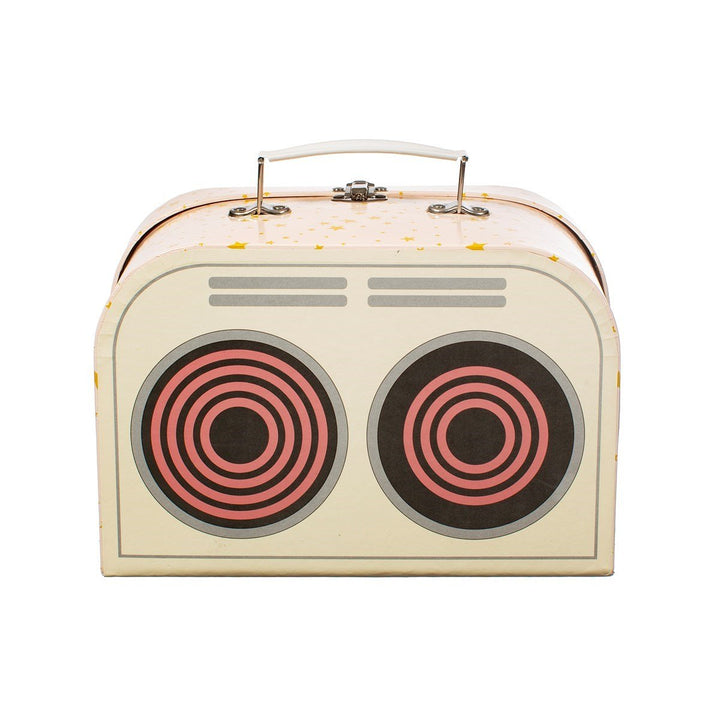 Ready, set, bake. This wonderful cooking set for playtime features an adorable scattered stars design. A great gift idea for a special little person. Inside the handy case, you'll find a spatula, whisk, wooden spoon, colander, frying pan and two saucepans. This item is an imitation toy set and not suitable for hot or cold drinks. Measurements: D16 x H13 x W24cm