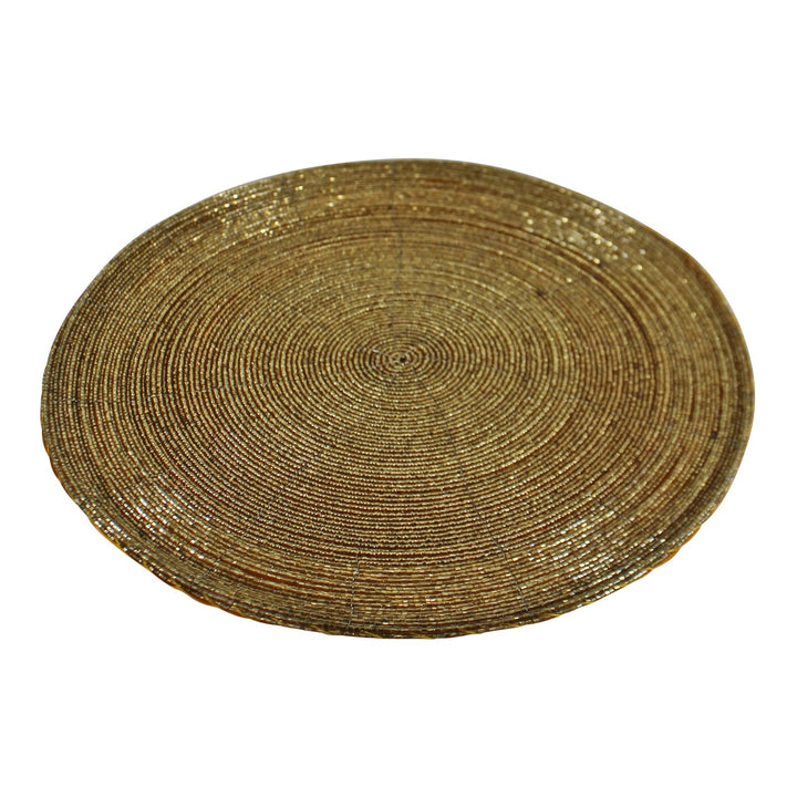 Set of 4 Gold Glass Beaded, Circular Placemats, 30x30cm