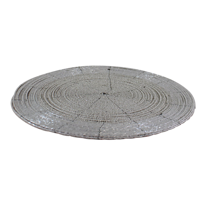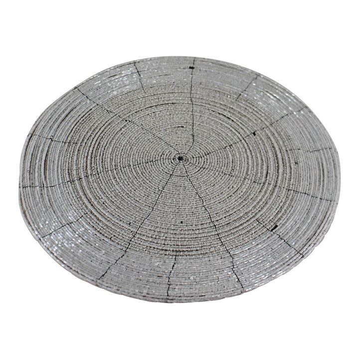 Set of 4 White Glass Beaded, Circular Placemats, 30x30cm