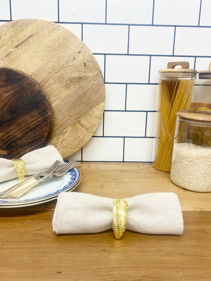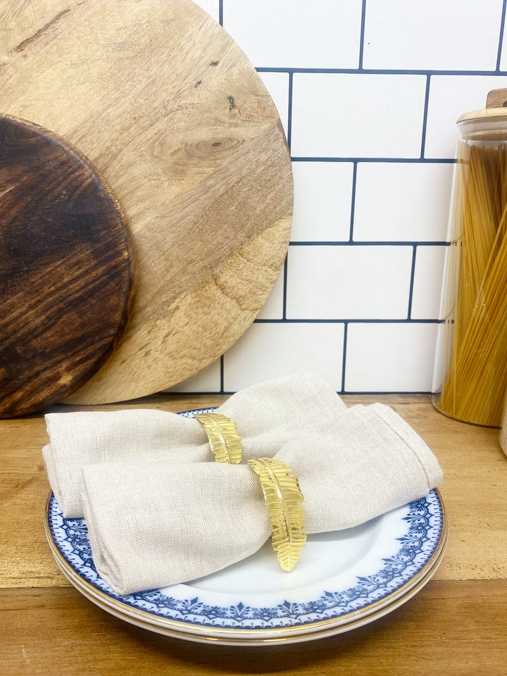 A beautiful way to dress up a dinner table. The set of four napkin rings are each detailed with a leaf design print and finished in gold. The perfect gold napkin rings for hosting dinner parties when family and friends are over. Measurements: D0.5 x H5 x W8cm