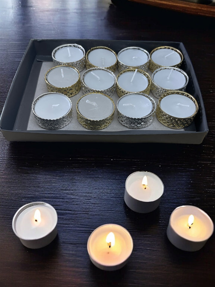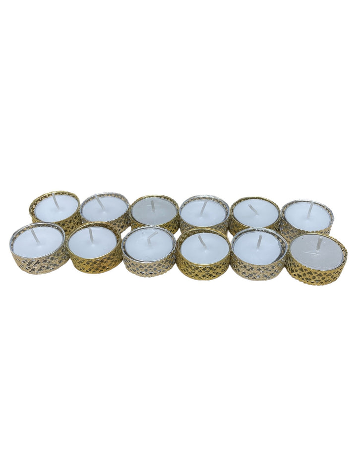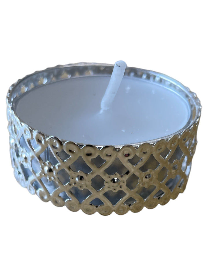 Silver and Gold Heart Pattern Tea Light Candles, Pack of 12