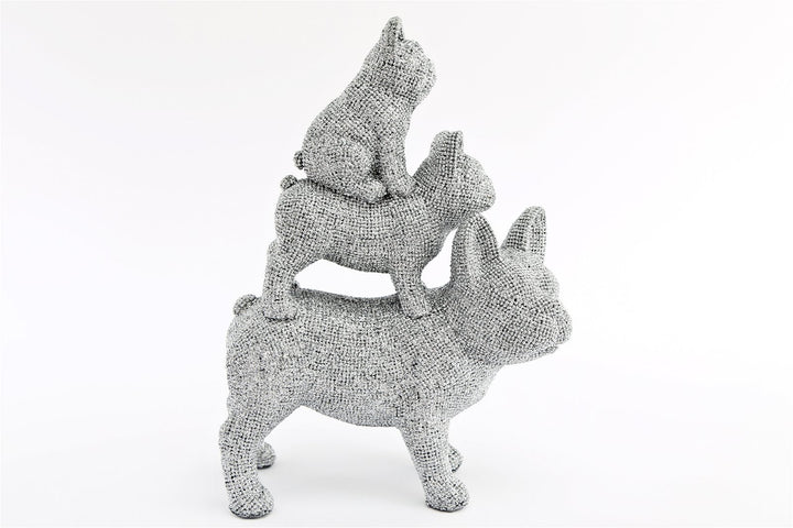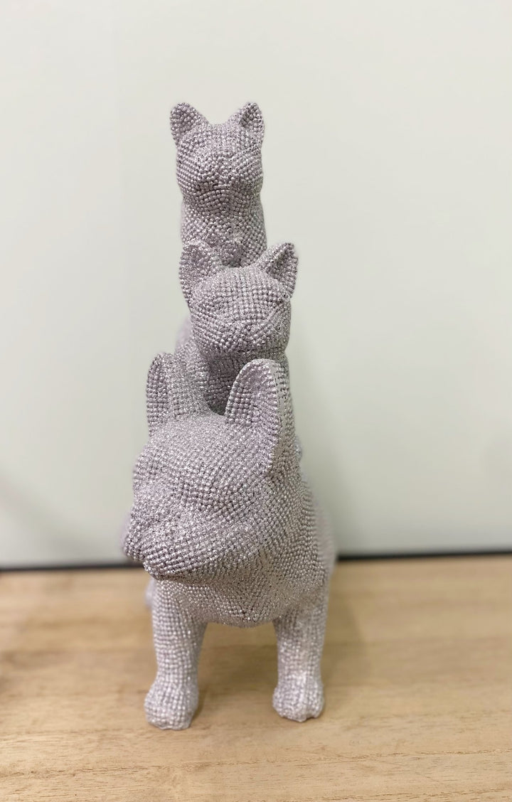 Silver Beaded Trio Stacked Bulldog Ornament 31.5cm