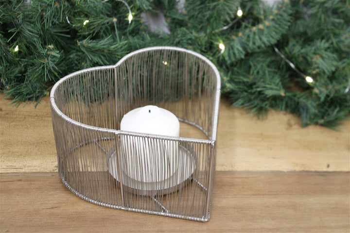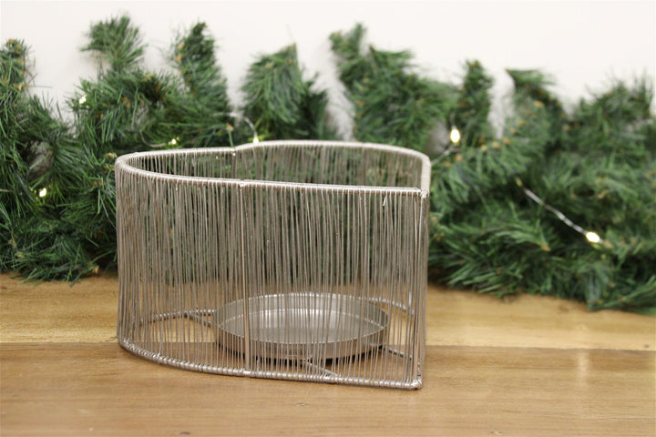 Heart shaped silver tealight holder. Made from 100% Iron. Measurements: D11 x H20 x W20cm