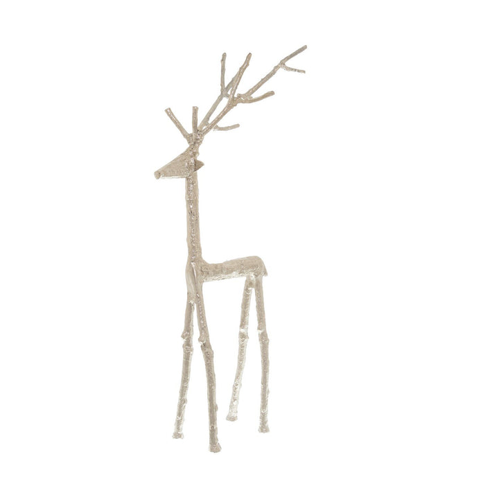 A distinctly majestic silver stag ornament stands ready to become the centrepiece of any curated collection. This architectural marvel combines the grace of wildlife with contemporary metallic aesthetics, creating an unforgettable statement piece that resonates with modern and traditional tastes alike. The gleaming silver finish catches and reflects light from every angle, while the proud posture and detailed anatomical representation showcase unparalleled attention to detail. Perfect for creating dramatic seasonal displays or as a year-round decorative accent, this piece works magnificently when paired with complementary metallic accessories such as the Silver Crown Tealight Holder for ambient lighting effects. For a cohesive themed arrangement, consider combining with the coordinating smaller stag variant, or create visual interest by adding the Garda Decorative Artichoke and Festive Pearl Decorative Spray. The carefully considered scale makes it ideal for retail displays, whether positioned as a standalone attraction or as part of a wider seasonal collection. For maximum impact, retailers can create layered arrangements incorporating The Noel Collection Star Topped Glass Trees and Carved Wood Effect Grey Snowy Trees, offering customers a complete styling solution that drives multiple product sales. The ornament's universal appeal and quality construction ensure consistent sales throughout the year, making it a reliable stock choice for discerning retailers seeking distinguished pieces for their product range.