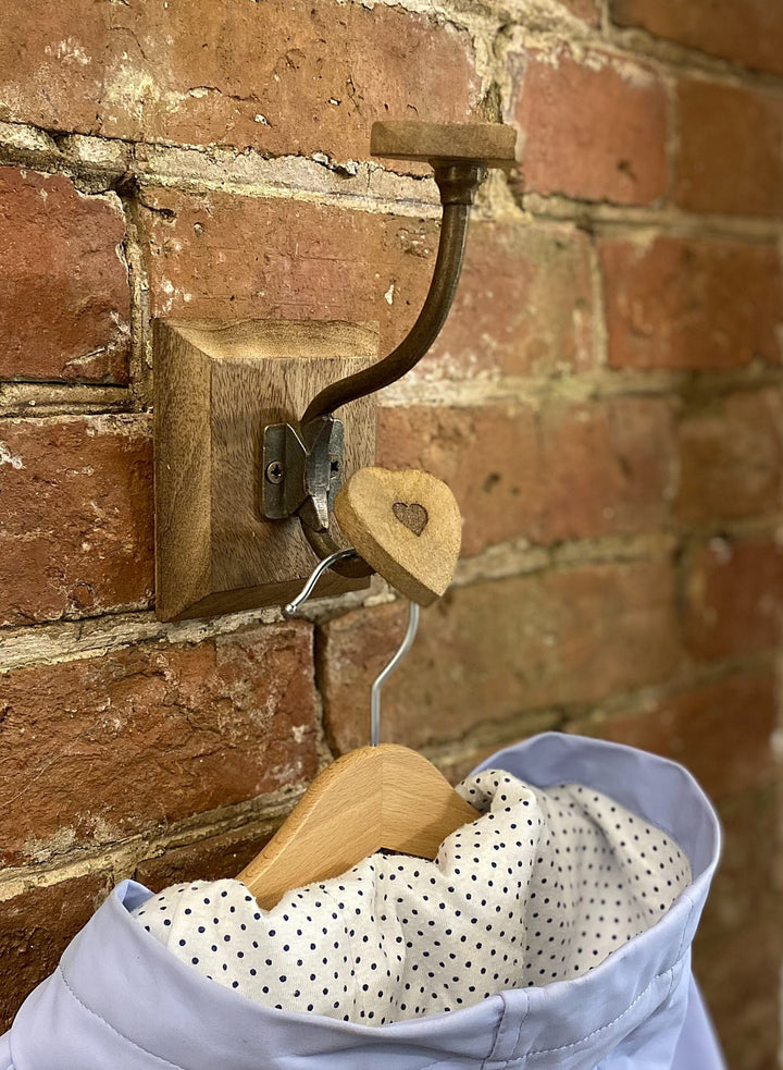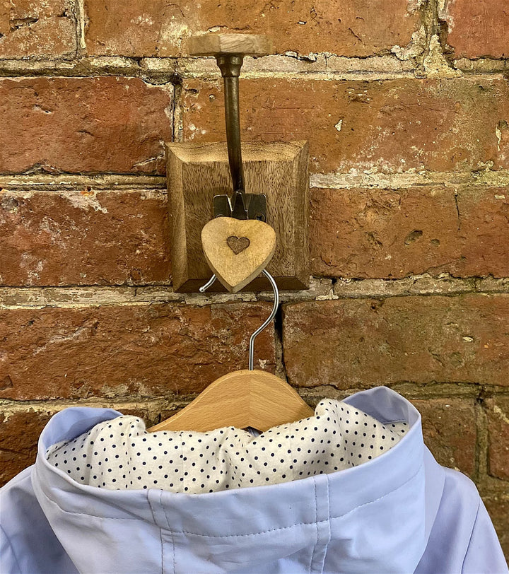 Single Mango Wood Heart Double Coat Hook