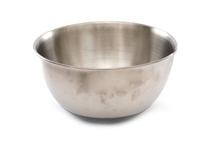 A medium mixing bowl made of stainless steel with non slip grey base. This bowl has an internal measuring guide marking for added convenience. This lightweight but sturdy bowl holds 3L and is easy to clean and is dishwasher safe. The non slip base secures and stabilizes the bowl while in use. Measurements: D22 x H12 x W22cm SKU: KG0949