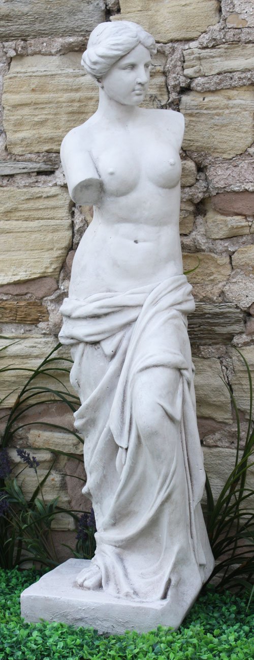 This Italian inspired 'Venus' figure stands 107 cm tall and would add a touch of style and grace to your garden. It is made to resemble smooth or weathered stone or marble. Part of our stunning range of Polyresin stone-effect garden ornaments. Built to last and extremely durable. Measurements: 30.5 x 25.4 x 106.7cm