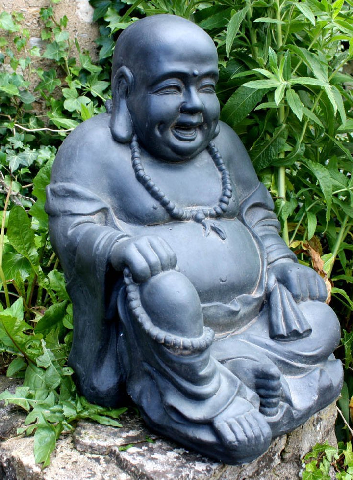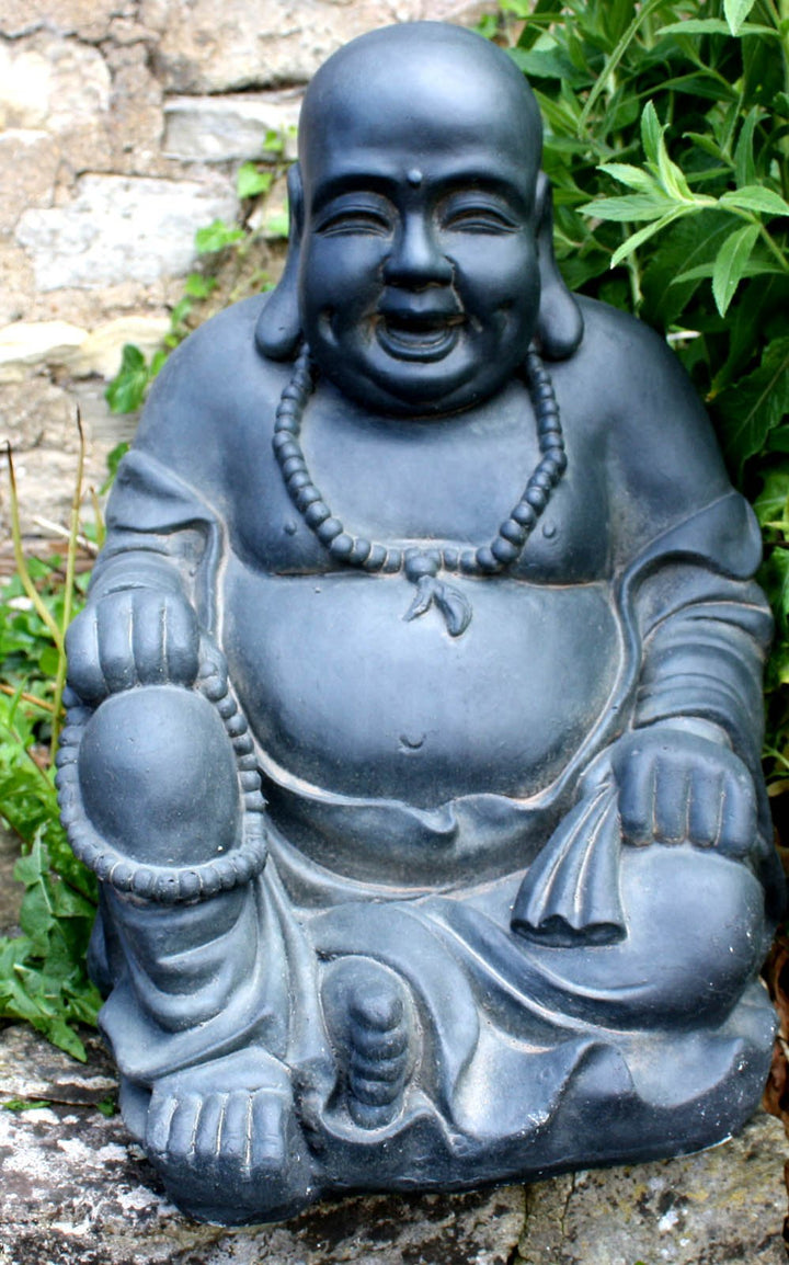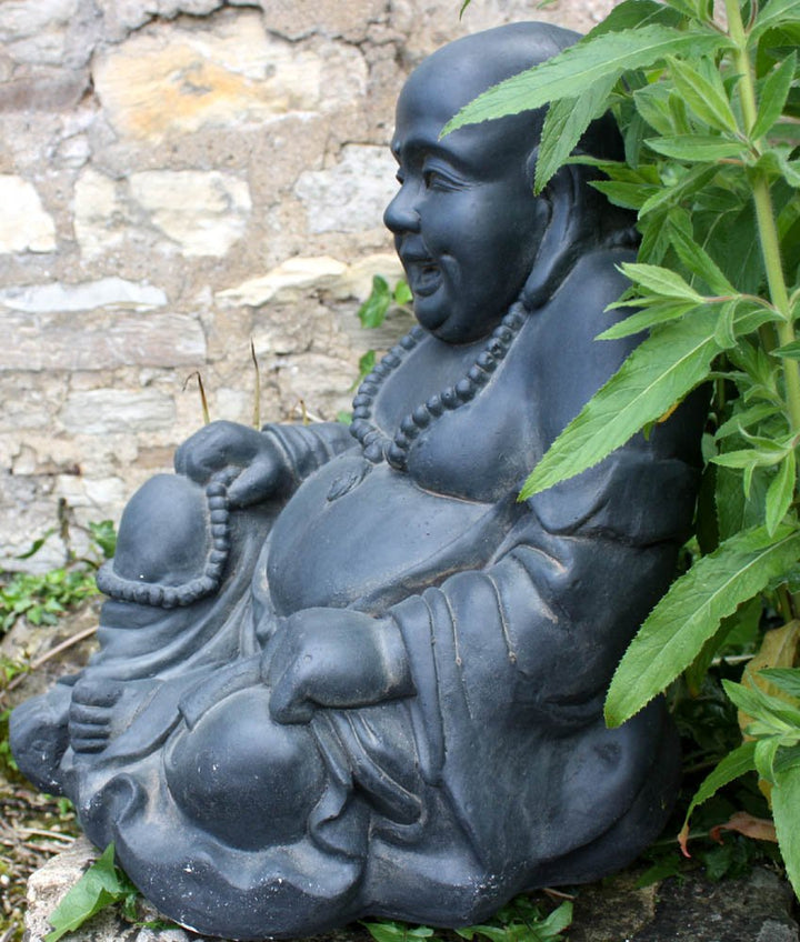 Buddhas evoke a sense of contemplative calm and meditation. This laughing Buddha with its beautiful detailing, captures that mood and would make a wonderful centrepiece to a zen room or garden, creating a peaceful and relaxing retreat. Finished in a grey stone effect. Part of our stunning range of Polyresin stone-effect garden ornaments. Built to last and extremely durable. Measurements: width 30.5 x depth 33 x height 43.2cm