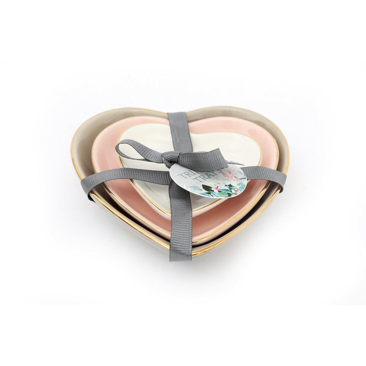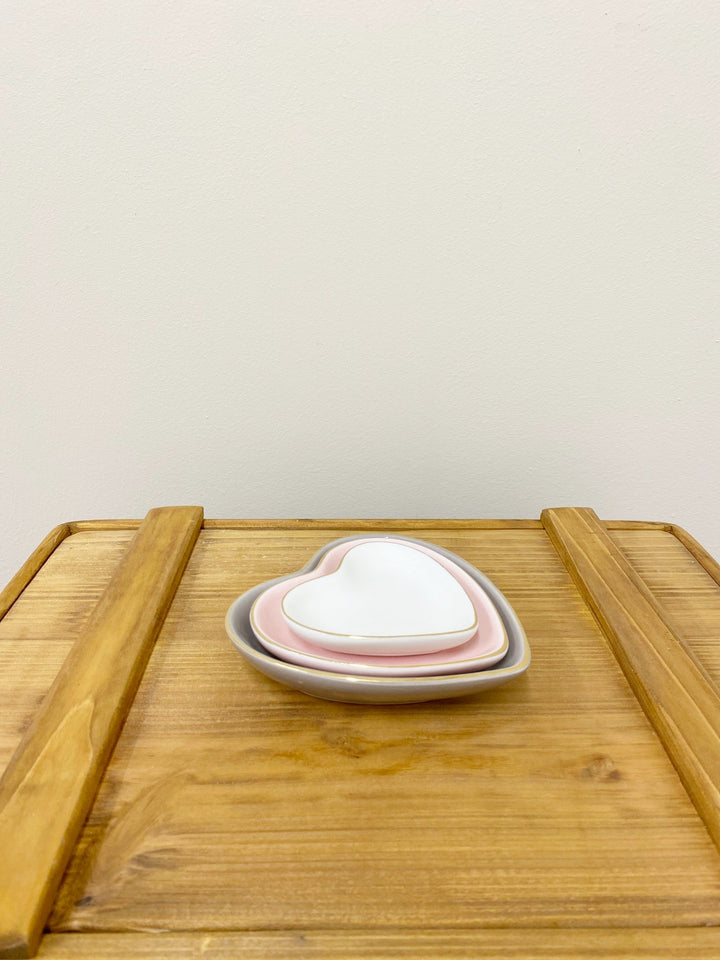 Three Heart Shaped Trinkets With Gold Edge