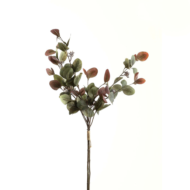 Immerse yourself in the subtle charm of this meticulously designed bouquet that marries the organic beauty of eucalyptus with contemporary flair. Each stem exhibits a mesmerizing dance of color variations, from gentle sage greens to misty greys, punctuated with unexpected touches of ruby and silver that catch the light. The thoughtful arrangement creates depth and movement, making it an ideal focal point for retail displays and commercial environments. This maintenance-free botanical selection offers year-round appeal while maintaining its fresh-picked look, delivering exceptional value for retailers. For a cohesive display strategy, consider pairing with the Darcy Antique White Vase for a modern minimalist statement, or enhance the botanical theme with complementary pieces like the Burgundy Berried Eucalyptus and Seeded Eucalyptus Stem. The addition of seasonal touches such as the Deep Mustard Dahlia Stem or Autumn White Hydrangea can refresh the display throughout the year. Each stem is positioned to create an open, airy arrangement that maintains visual interest from every angle, making it perfect for window displays or central store locations. The neutral color palette ensures seamless integration with existing merchandise, while the varied textures and leaf patterns provide the authentic look that discerning customers demand. This bouquet represents a smart investment for retailers seeking to expand their artificial botanical offerings with pieces that combine lasting quality with contemporary design sensibilities.